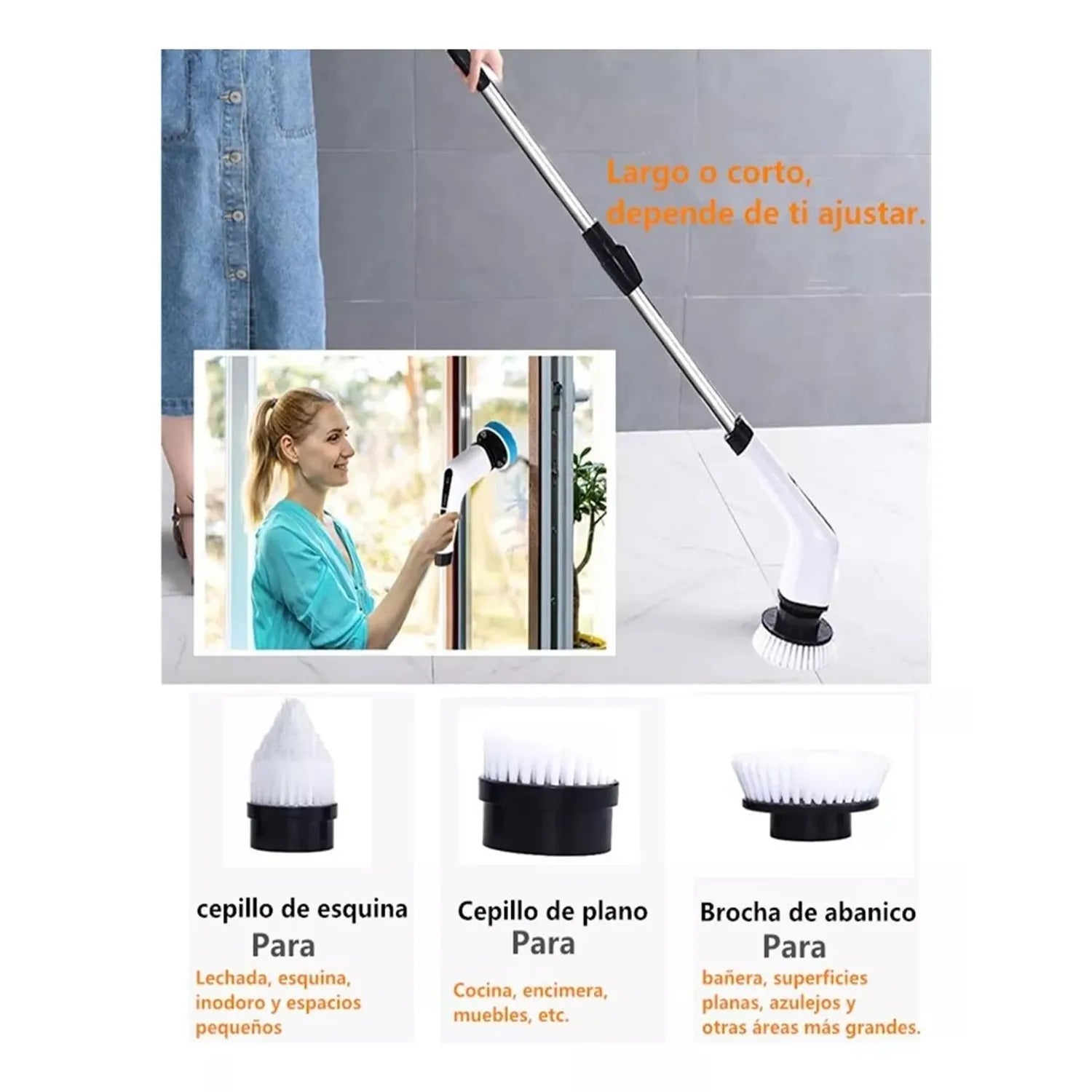¡Haz que la limpieza profunda sea más rápida y sin esfuerzo! Este cepillo eléctrico multifuncional es tu aliado ideal para dejar impecables baños, cocinas, pisos, paredes, autos y mucho más.